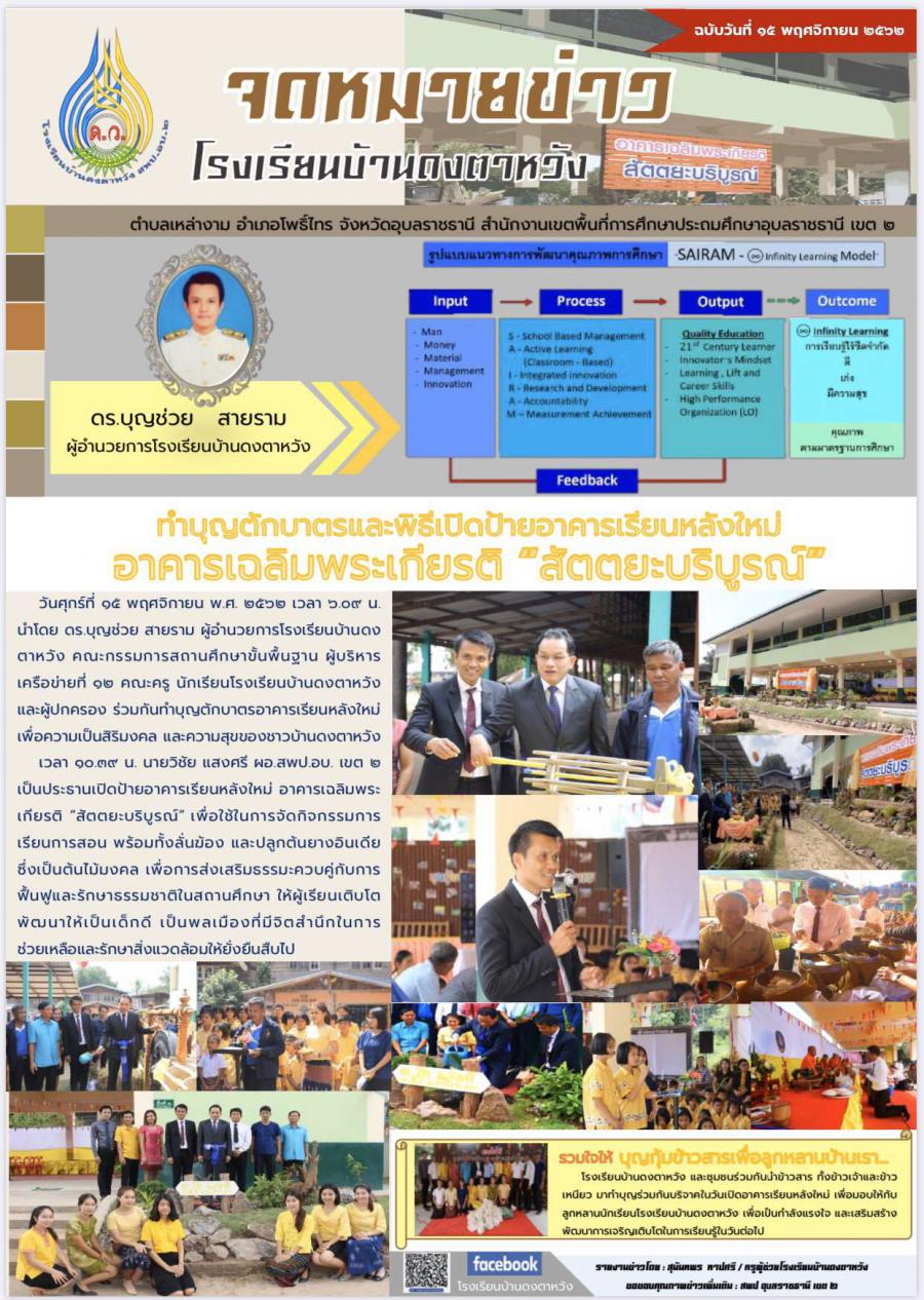 พิธีเปิดป้ายอาคารเรียนหลังใหม่ อาคารเฉลิมพระเกียรติ "สัตตยะบริบูรณ์"