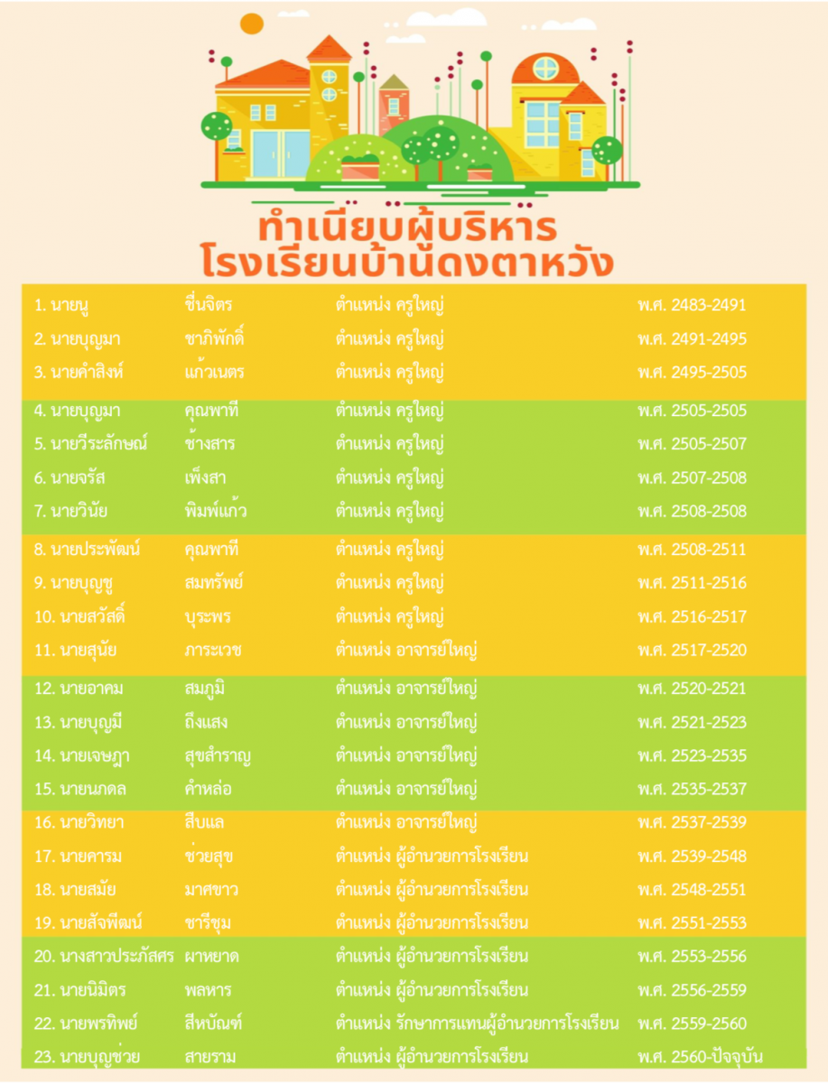 | ชื่อ-สกุล | ทำเนียบผู้บริหาร โรงเรียนบ้านดงตาหวัง |